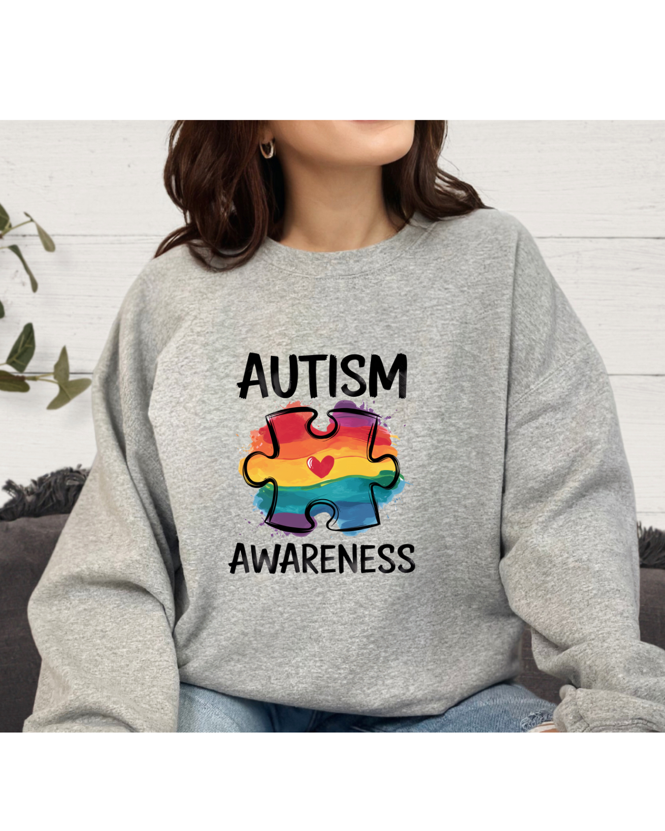 Show your support for autism awareness with this cozy Autism Awareness sweatshirt! Featuring a vibrant rainbow puzzle piece with a heart in the center, this design represents love, acceptance, and understanding. Made from soft, high-quality fabric, it’s perfect for Autism Awareness Month, sensory-friendly events, advocacy, or everyday wear.