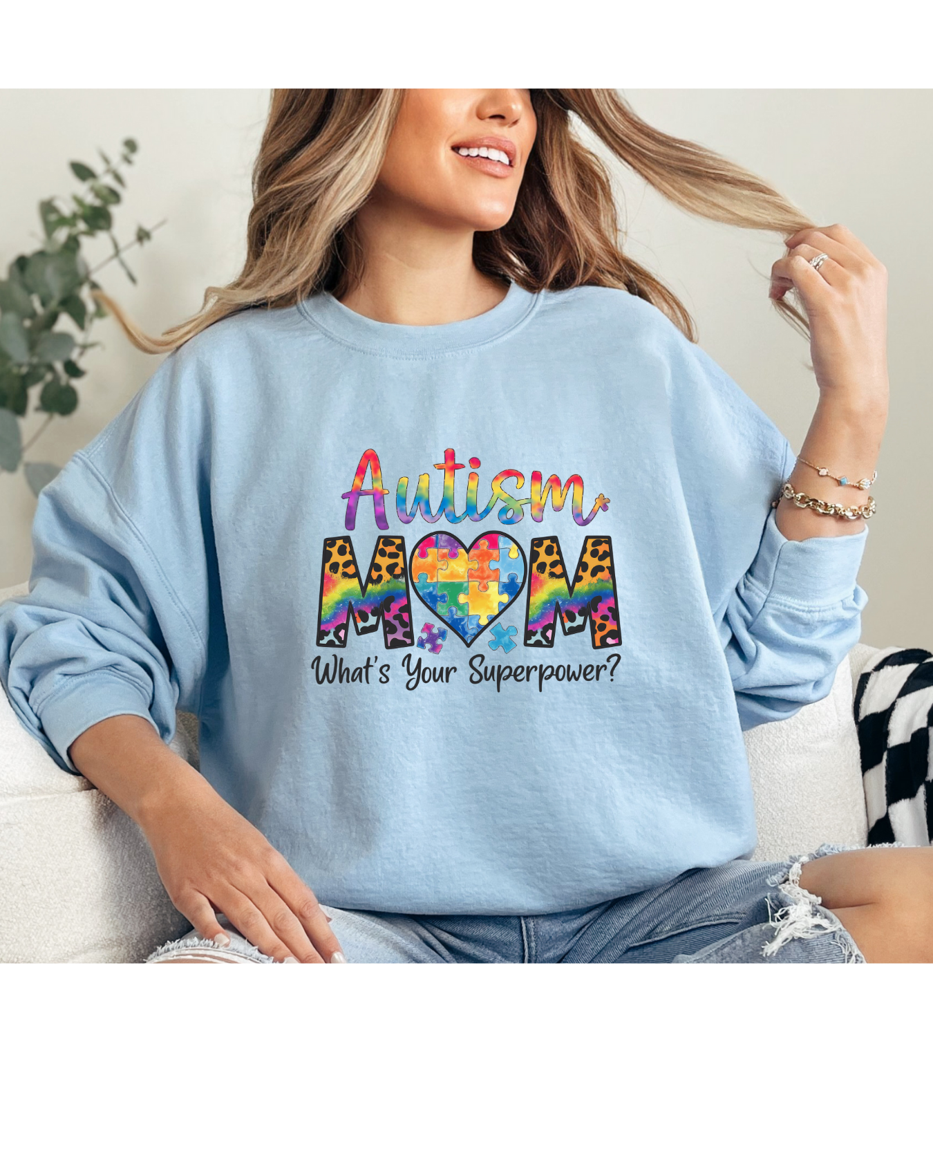 Autism Mom Sweatshirt – What’s Your Superpower? Rainbow Awareness Sweatshirt
