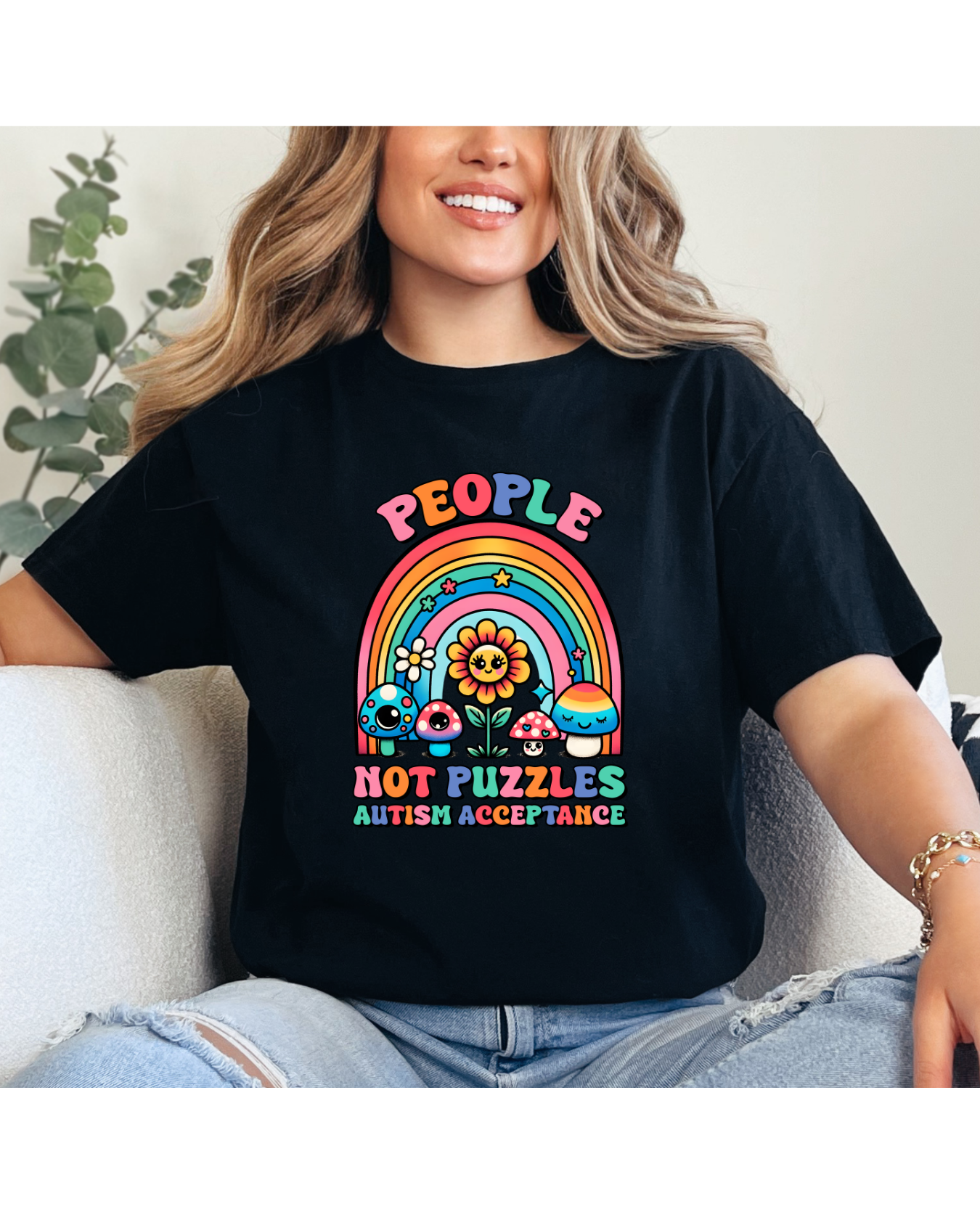 People Not Puzzles T-Shirt – Autism Acceptance Retro Rainbow Design